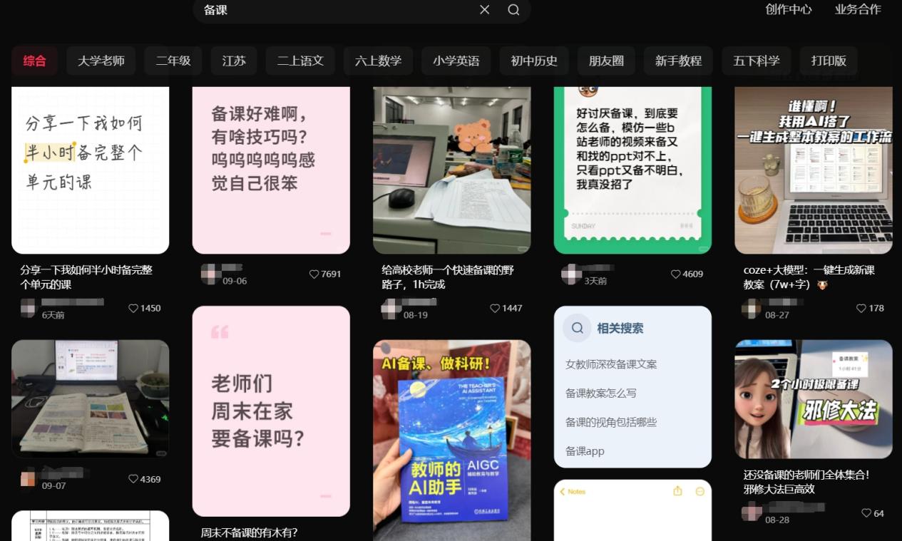 教师们在社交平台搜索更高效的备课方案(图源:小红书)
