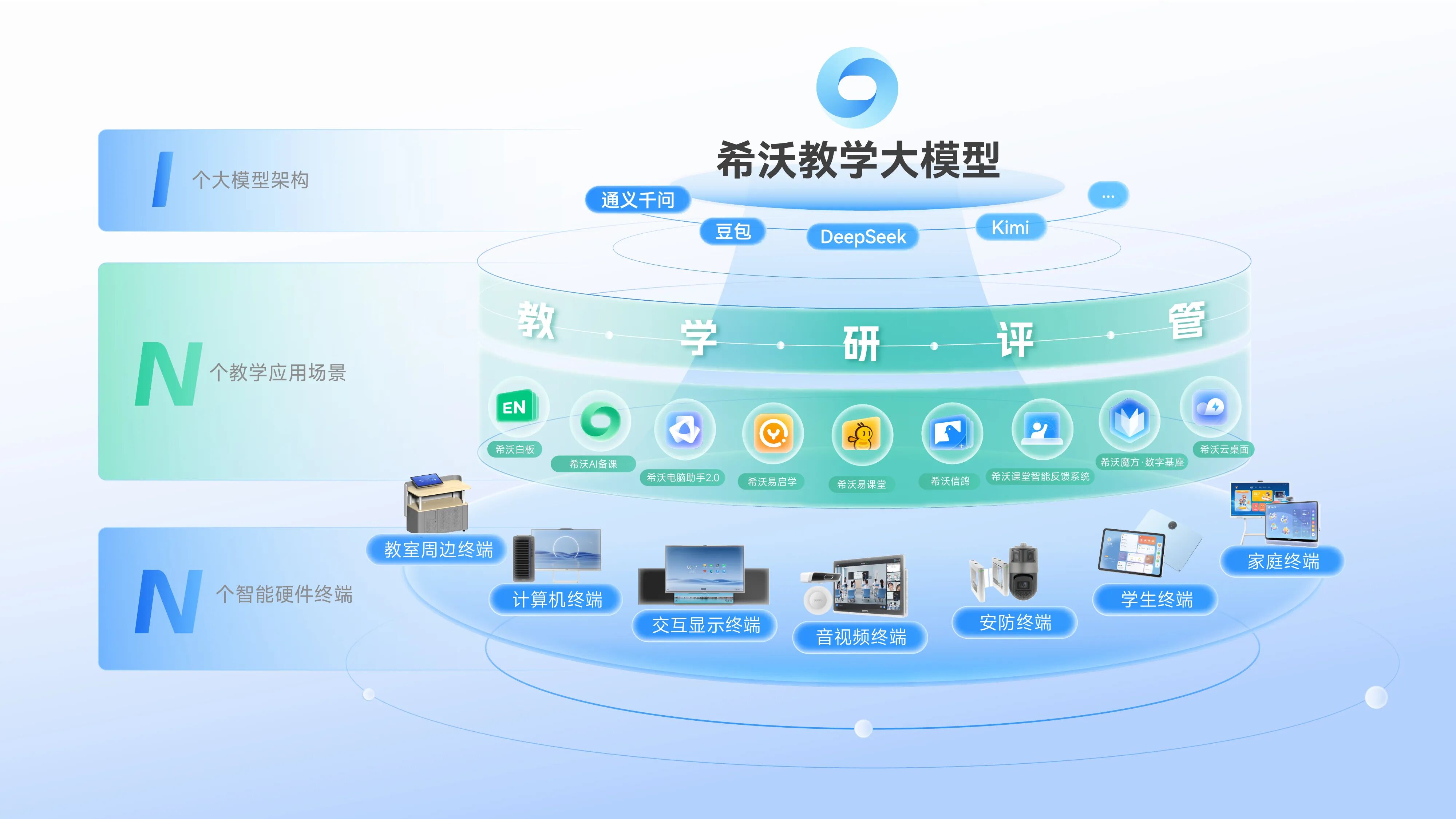 在教育行业转型关键期,希沃作为国内头部教育科技品牌,既是行业发展“先行者”,也是“助力者”。这背后,希沃搭建起了自研教学大模型及“1+N+N”体系——一个大模型作为底座,连接多个应用场景和硬件终端。通过不断迭代,他们希望让更多学校在真实课堂里感受到AI的价值。